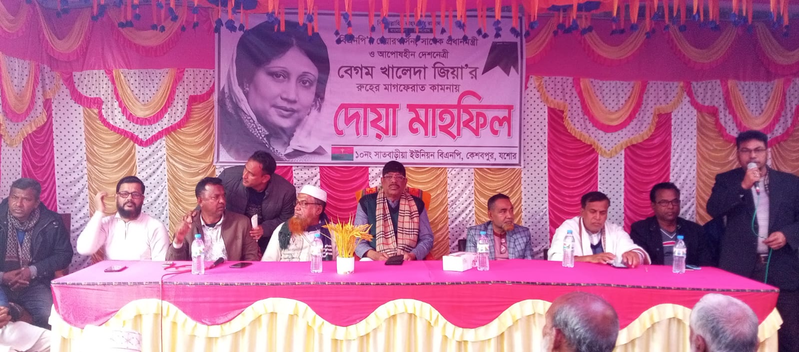 বিএনপির চেয়ারপারসন, সাবেক প্রধানমন্ত্রী ও আপোষহীন দেশনেত্রী বেগম খালেদা জিয়ার রুহের মাগফিরাত কামনা করে যশোরের কেশবপুরের সাতবাড়িয়া ইউনিয়ন বিএনপির উদ্যোগে দোয়া মাহফিল অনুষ্ঠিত হয়েছে।