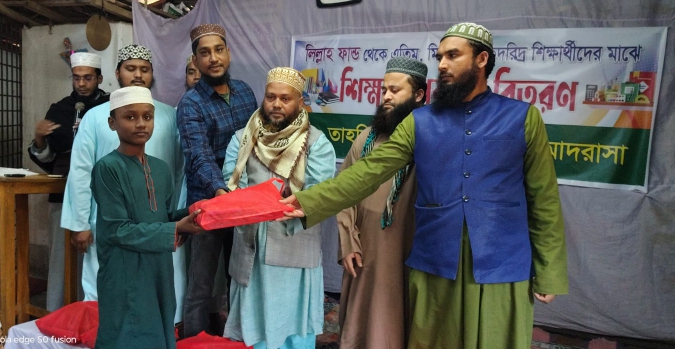 সভাপতির বক্তব্য শেষে এতে মিসকিন ও হতদরিদ্র শিক্ষার্থীদের মাঝে ২০২৬ শিক্ষাবর্ষের বই সহ শিক্ষা উপকরণ বিতরণ করা হয়।